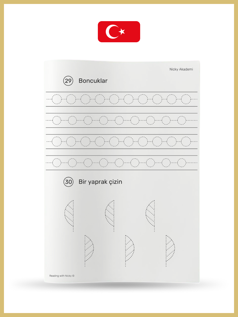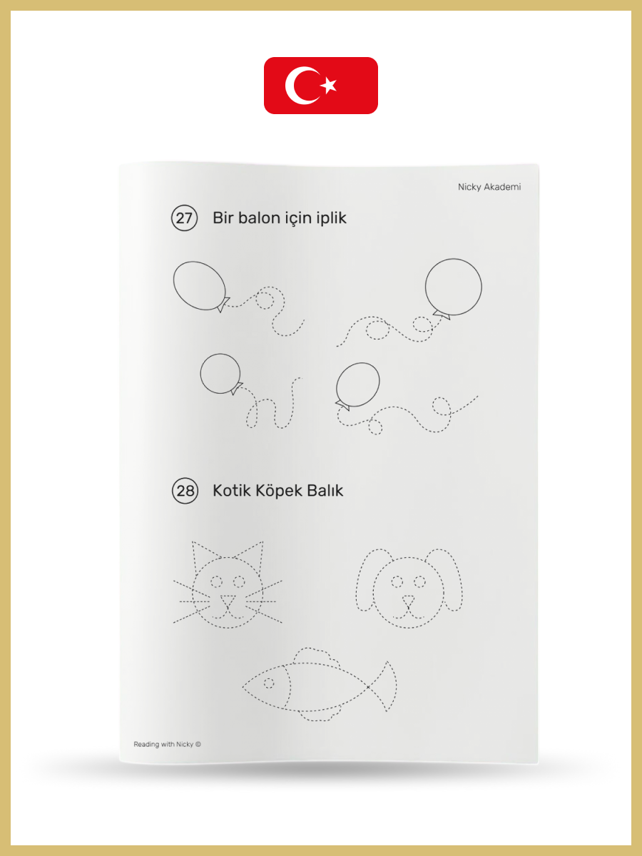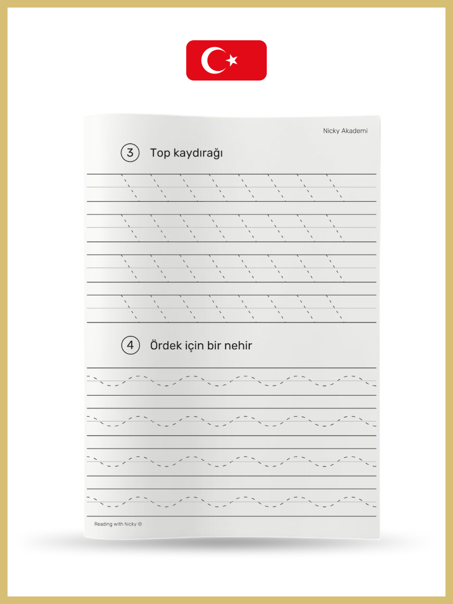 Turkish Handwriting Alphabet. Writing practice sheets, all the letters of the Turkish alphabet. 32 pages. Printed