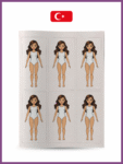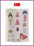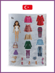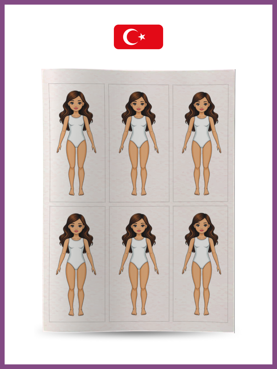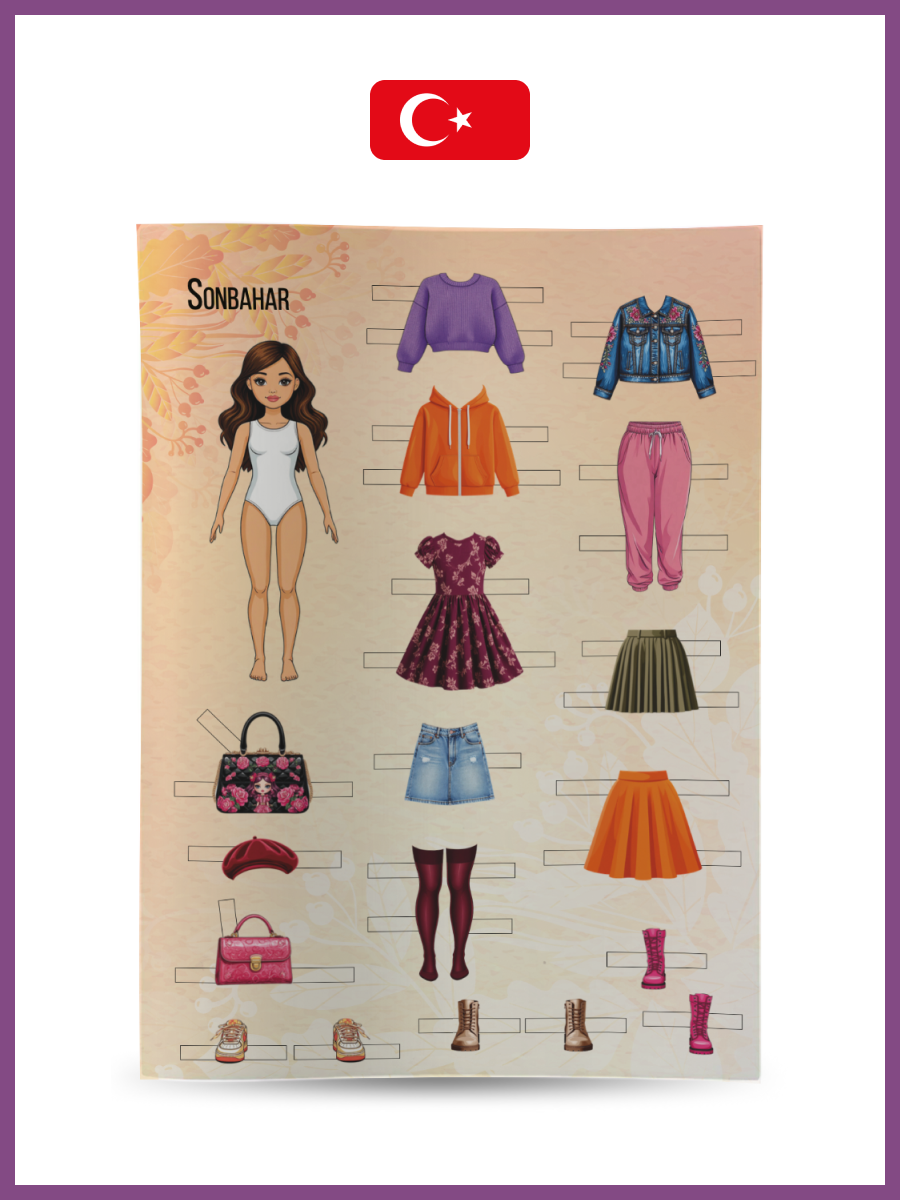 Dress-Up Oyunu: Koleksiyon 01 – 4 mevsim, 10 figür/bebek, 60 giysi parçası, esmer.